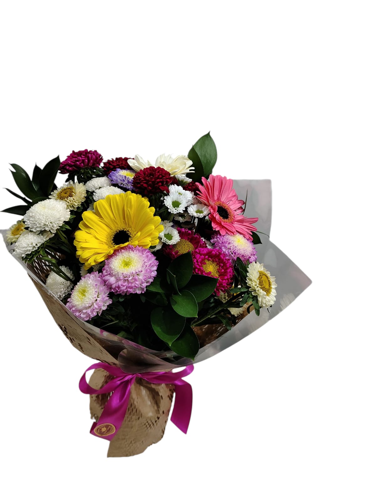 Buque de rainha margarida cores variadas na embalagem para presente.